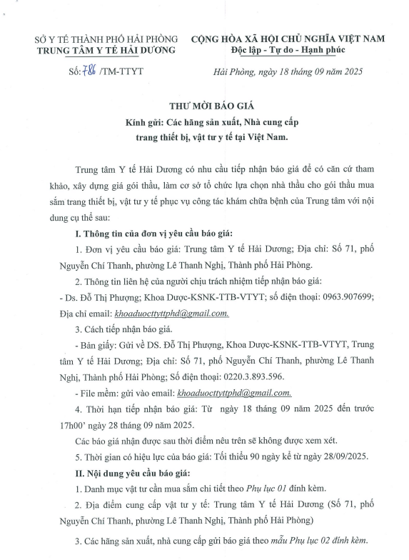 (Kèm theo Thư mời số:         /TM-TTYT, ngày  18/09/2025 của Trung tâm y tế Hải Dương)