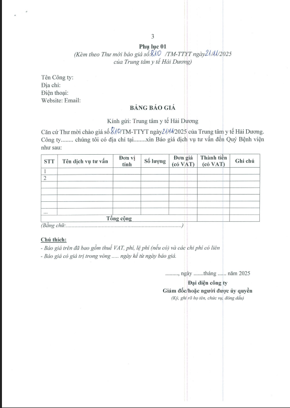 Tin tức nội bộ THƯ MỜI BÁO GIÁ GIÁM ĐỐC SỞ Y TẾ LÊ MINH QUANG ĐẾN THĂM VÀ LÀM VIỆC TẠI TTYT HẢI DƯƠNG TRUNG TÂM Y TẾ HẢI DƯƠNG TỔ CHỨC NGHIỆM THU ĐỀ TÀI NCKH CẤP CƠ SỞ NĂM 2025